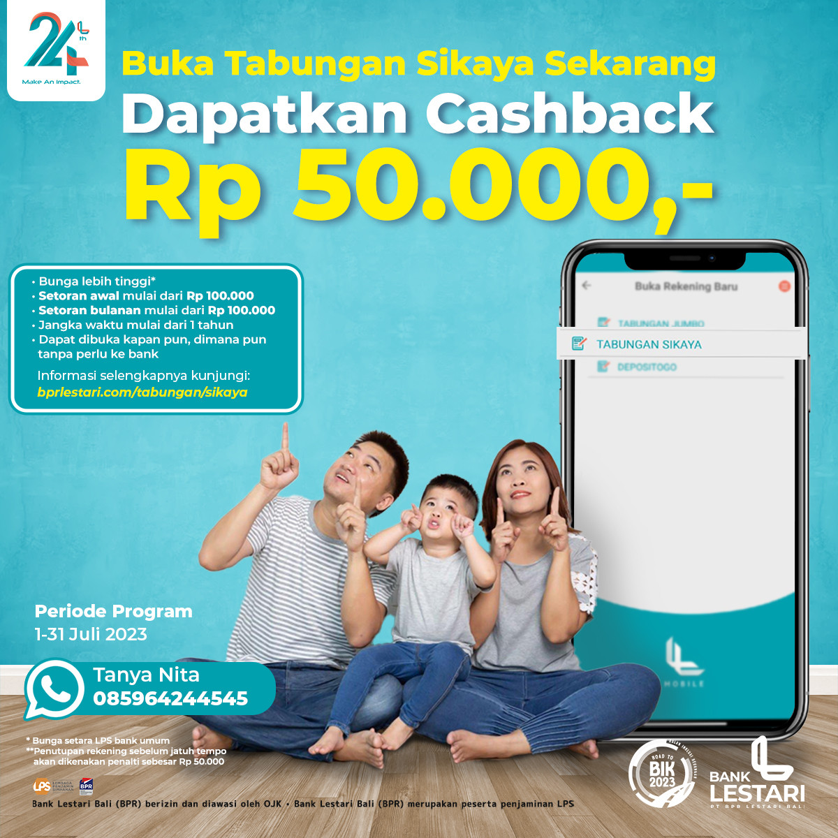Khusus bulan ini! Ada promo cashback Rp50.000 untuk Anda yang pertama kali buka rekening Sikaya. Yuk dapatkan promonya sekarang!